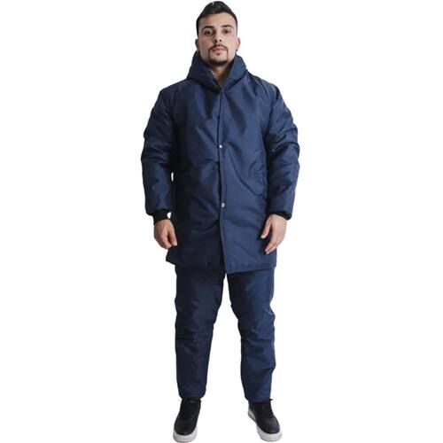 A Japona frigorífica da Maicol, com CA 10975, é confeccionada em nylon 330 com forro matelassê de manta acrílica de 150 g/m². O fechamento com botões de pressão metálicos e ajuste, junto com mangas longas e punho em malha, garantem vedação contra frio intenso.