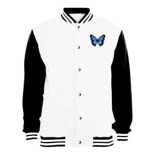 Jaqueta Colegial Moletom Masculina Feminina Borboleta sem Bolso - Branco - G