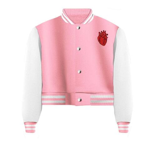 Jaqueta Cropped Moletom Coração Feminina Colegial - Rosa - G