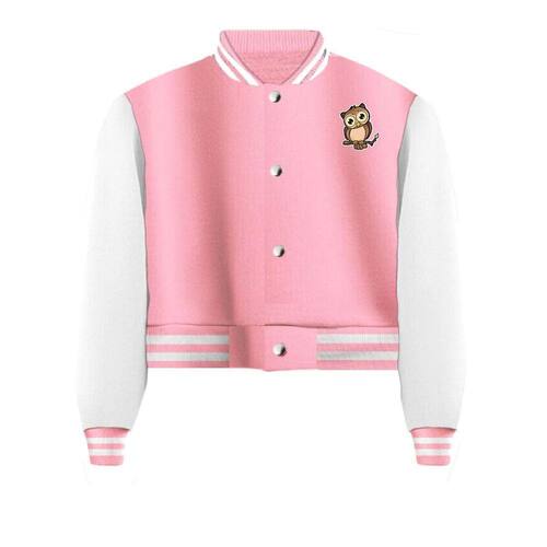 Jaqueta Cropped Moletom Coruja Feminina Colegial - Rosa - P
