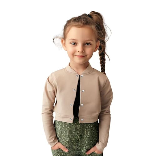 Jaqueta Cropped Moletom Infantil Lisa Estilo Casual Sem Bolsos - Bege - 10 anos