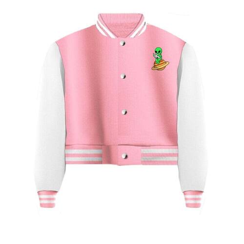 Jaqueta Cropped Moletom Saturno Et Feminina Colegial - Rosa - M