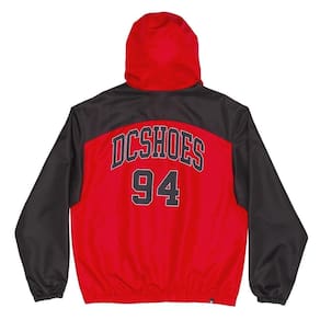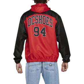 Jaqueta DC Shoes feita em modelagem oversize fit, nylon pesado repelente a água, forro total em mesh, recortes no tórax com tecidos contrastantes, punho e barra com elástico interno, recorte no capuz, fechamento com zíper contrastante, estampa no peito, estampa costas e elástico com reguladores plásticos no capuz e barra.