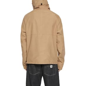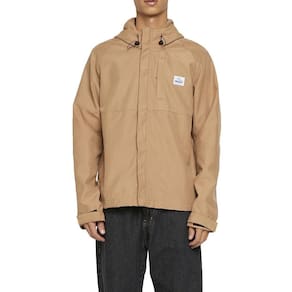 Jaqueta Element com capuz, forrada, cordão para ajuste, bolsos, zíper com puxador personalizado, patch aplicado na frente e etiquetas personalizadas.