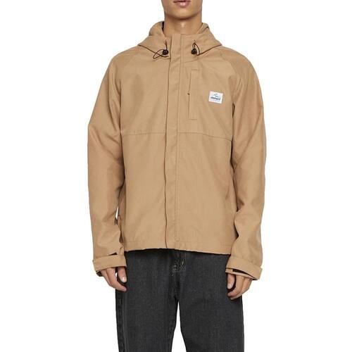 Jaqueta Element com capuz, forrada, cordão para ajuste, bolsos, zíper com puxador personalizado, patch aplicado na frente e etiquetas personalizadas.