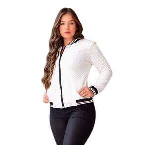 Jaqueta Feminina Bomber BlusadeFrio com Ziper Inverno Casaco - Off White Médio - P