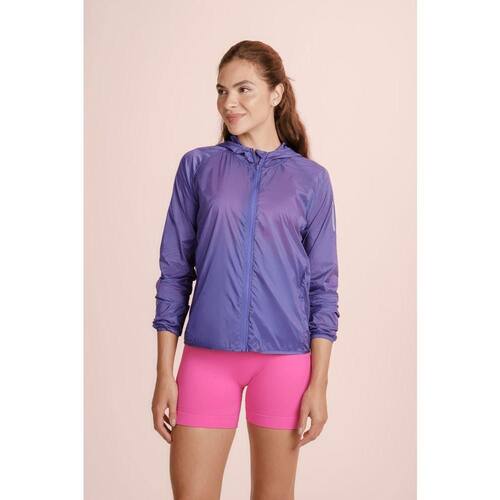 Jaqueta modelo corta vento com manga longa e gola alta. Possui capuz e detalhes refletivos. É possível dobrar a jaqueta de forma que se transforme em uma bolsa, prática de carregar até pela alça. Uma aliada para exercícios outdoor e que traz a versatilidade para prática a atividade física.