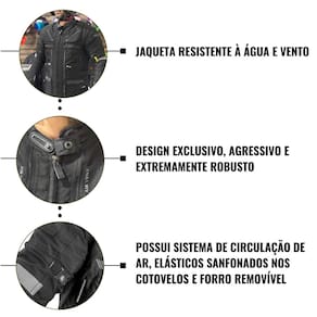 Enfrente chuva, vento ou calor escaldante sabendo que sua jaqueta é resistente à água e mantém o corpo fresco graças ao sistema de circulação de ar, garantindo conforto absoluto mesmo em longas jornadas.