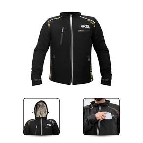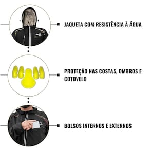 Seu capuz removível com zíper e ajuste por cordão oferece versatilidade, enquanto os bolsos estratégicos (dois nas costas, dois frontais, um interno para celular e um na manga) garantem praticidade no dia a dia ou na pista.