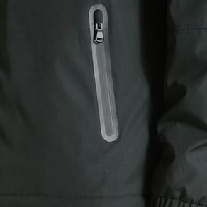 Jaqueta Hurley com forro de sherpa, capuz com gola alta, patch ICON 3D de borracha, bolsos frontais com zíper e bolso no peito com borda refletiva.