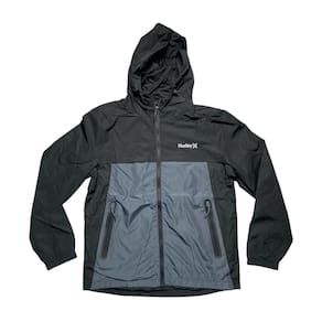 Jaqueta Hurley Windbreaker, forro em mesh, capuz com gola alta, heat transfer ONE&ONLY refletivo, recorte frente e costas e bolsos frontais selados.