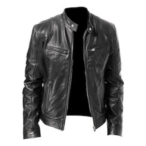 Jaqueta impermeável de couro de motocicleta para homens - Preto - M