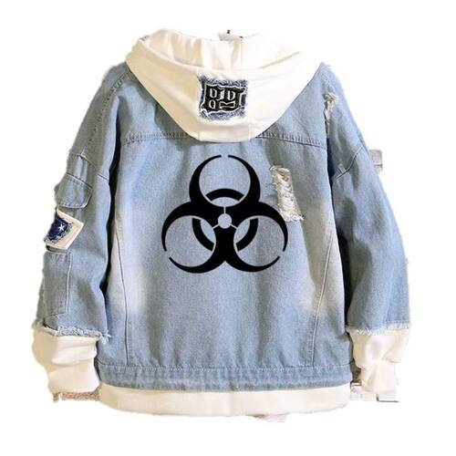 Jaqueta jeans casual solta desenho animado Resident Evil