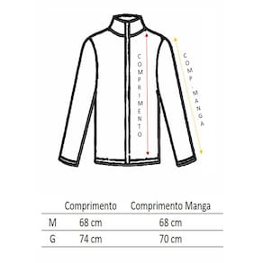 Tamanho G : Comprimento 74 cm / Comprimento Manga 70 cm