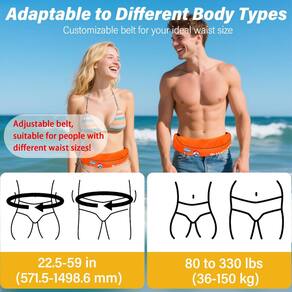 - Flutuabilidade suficiente: flutuabilidade 110N, pode suportar adultos com peso inferior a 130 kg e equipado com um cinto ajustável, projetado para se ajustar às formas e tamanhos do corpo da maioria das pessoas, adequado para a maioria dos adultos e adolescentes (circunferência da cintura mais baixa adequada: 57 cm - circunferência máxima da cintura adequada: 150 cm)