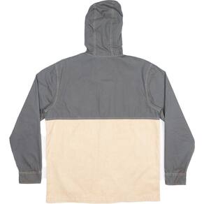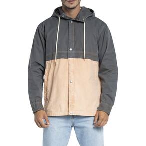 Jaqueta Quiksilver com tecido em algodão, modelagem regular, recorte em cor contrastante, capuzd e 3 painéis, sem forro, bolsos embutidos, fechamento com lapela frontal e etiqueta personalizadas.