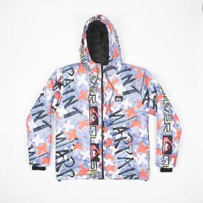 Jaqueta QuikSilver Puffer feita em tecido poliéster sublimado leve com forro, gola alta, bolsos laterais, bolso interno, lapela frontal com fecho em tiras duplas aderentes, barra reta, punhos de retilínea e modelagem regular.