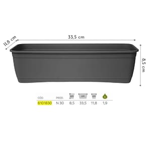 Jardineira Aquarela 30 (1,9L) Preto NUTRIPLAN Descrição * A linha Aquarela traz para o seu lar toda a charmosa e alegre atmosfera das Jardineiras Aquarela. * As jardineiras da Linha Aquarela são mais do que simples recipientes, elas são estímulos à criatividade, irradiando alegria por todos os ambientes. * Apresentam tonalidades especiais que promovem uma atmosfera vibrante em qualquer espaço. * Feitas de material plástico de alta qualidade e disponíveis em cores suaves, essas peças adicionam um toque de charme delicado. Caracteristicas * Tamanho: N-30 * Altura: 8,5 cm * Largura (boca): 33,5 cm * Largura: 11,8 cm * Capacidade: 1,9 Litros * Cor: Preta * Formato: Retangular * Material: Plástico * Prato não incluso Informações/Dicas/Usos * A cor da jardineira à venda é Preta. * Quaisquer outras cores, pratos, suportes, acessórios e dimensões mostrados nas imagens são apenas ilustrativos. Nós da CULTIV.ME trabalhamos desde 2013 para trazer os melhores produtos ao alcance de todos CULTIV.ME o verde que faltava!
