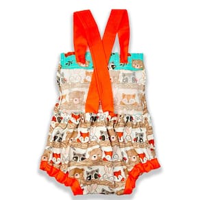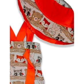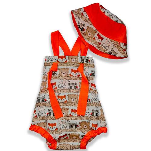Jardineira Banho de sol bebê bichinhos + chapéu de Praia Romper luxo - P - Laranja