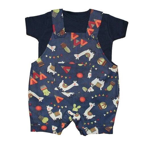 Jardineira de Bebê Lhama 2 Peças sendo uma jardineira azul marinho estampada com lhamas, cabaninhas e bandeirinhas e camiseta azul marinho. Roupa para o baby super soltinha ideal para o verão. A camiseta é básica e com mangas curtas; e a jardineira possui fechamento com botões de pressão (nas alças e entrepernas). Roupinha moderna para deixar seu Baby muito fofo!