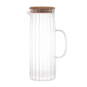 Jarra em vidro borossilicatoCom tampa de bambu vedação em in Material: Vidro e Bambu Conteúdo da Embalagem: 01 Jarra Especificações Técnica:Medidas: 13x9x25cm Comprimento X Largura X Altura Peso: 480grCapacidade: 1100mlMarca: RojemacOrigem: Importado Cuidados de Limpeza e Uso:Lavar com detergente neutro e esponja maciaNão lavar em máquinasNão usar produtos químicosPara realçar o brilho, utilize flanela branca e álcool líquido