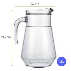 Com capacidade para 1,5 litros, composta em vidro extraforte e um design super charmoso, ela veio para facilitar a sua vida e tornar a sua mesa ainda mais prática e elegante. A jarra bar é resistente, ideal para água, suco e diversas bebidas. Além disso, a jarra de vidro deixa sua mesa muito mais elegante e bonita, com seu design que combina com o restante das peças que compõe sua mesa.