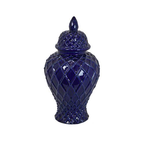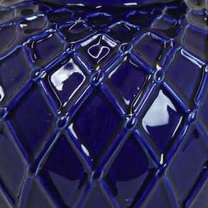 Jarra de gengibre Temple com design geométrico Livie Ceramic com tampa de cúpula azul