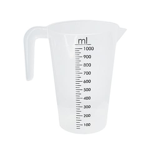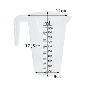 Capacidade e precisão: Com capacidade para 1 Litro e graduação em alto relevo com cor e divisões de 20 ml, permite medições exatas.