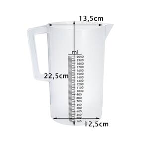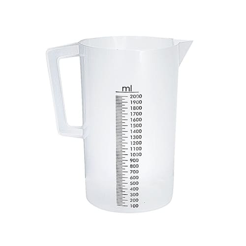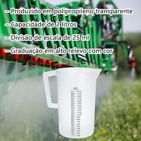 Capacidade e precisão: Com capacidade para 2 Litros e graduação em alto relevo com cor e divisões de 25 ml, permite medições exatas.