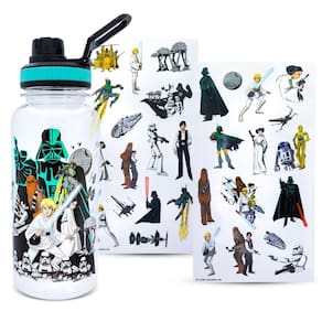 - De volta para onde tudo começou: explodindo com personalidade, este impressionante jarro de água apresenta um gráfico estilizado de heróis e vilões clássicos de Star Wars. Personalize a garrafa com as duas folhas de adesivos com base na saga épica.