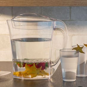 Jarra de Plástico 3 Litros com Alça Tampa e Filtro para Água Aromatizada Gold UZ Transparente.
