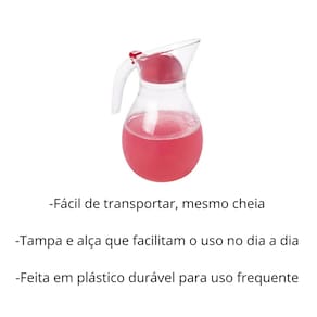 A Jarra de Plástico com Tampa e Alça 2L é prática, leve e ideal para o dia a dia. Perfeita para servir sucos, água, chás gelados ou refrescos, sua capacidade de 2 litros é ideal para famílias ou reuniões. O design funcional inclui alça ergonômica, que facilita o manuseio, e tampa que protege as bebidas de impurezas e preserva o sabor. Fabricada em plástico resistente e livre de BPA, é segura para contato com alimentos e fácil de limpar, sendo indispensável para a rotina da sua cozinha. Com cores modernas e acabamento que combina com qualquer ambiente, é a escolha ideal para quem busca durabilidade e praticidade com ótimo custo-benefício.