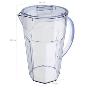 Pequenos cuidados com seu lar fazem toda a diferença. #Para Servir Suas Bebidas #Com Tampa E Alça #Jarra 1,8 litros Garantia: 90 dias / Peso: 275g / Cores: Natural, rosa quartzo ou verde menta / Ref: JD1000 Dimensões jarra e tampa: 13,5cm (C) x 13,5cm (L) 23,5cm (A) Diâmetro inferior jarra: 9,5cm Cuidados: - Não lavar com Materiais Abrasivos; - Não utilizar no micro-ondas; - Não utilizar na máquina de lavar louça; Capacidade: 1,8 litros. Material: - Poliestireno: Material translúcido, não transfere odor, nem gosto aos alimentos. Atóxico, pode entrar em contato com alimentos. Suas bebidas preferidas terão um lugar super especial e ainda proporcionando muita elegância e sofisticação para sua mesa. A jarra de suco conta com capacidade de 1,8 litros. Por a jarra para água possuir tampa, bico e alça, ajuda na dosagem da bebida no momento de servir, sem derramar. Para manter sua bebida na temperatura ideal, a jarra pode ser utilizada na geladeira. Sirva deliciosas bebidas com muito mais praticidade, completando a mesa com elegância e muito bom gosto.