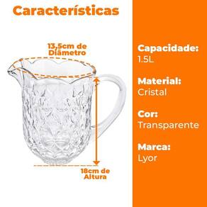 Para servir um refrescante suco, guardar a água na geladeira, assim como conservar um chá gelado para refeição, a jarra de cristal Lyor Lile com 1,5L de capacidade, na cor transparente, é um recipiente que ajuda não apenas na composição da mesa, mas sua funcionalidade durante ocasiões importantes, desde uma reunião a um encontro com os amigos nos momentos de descontração. Com ela, seus dias ficam mais refrescantes.