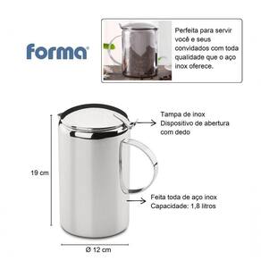Diametro (em cm):: 0 | Capacidade (em gr):: 0 | Largura (em cm):: 12 | Altura (em cm):: 19 | Peso bruto (em gr):: 550 | Materiais:: Inox | Comprimento (em cm):: 18 | Capacidade (em ml):: 1800 | Largura da emb. (em cm):: 16 | Peso liquido (em gr):: 450 | Comprimento da emb. (em cm):: 16 | Altura da emb. (em cm):: 20