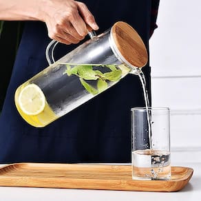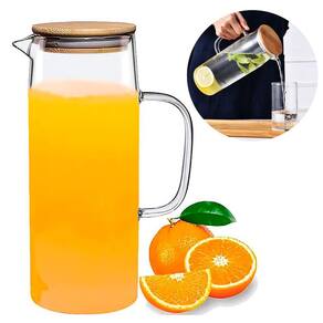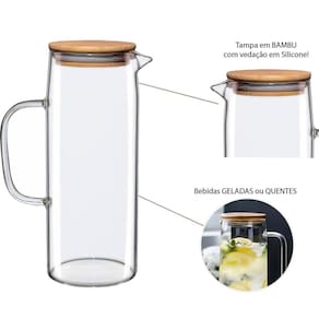 Trazendo mais praticidade e esbanjando bom gosto e sofisticação, a Jarra de Vidro com Tampa de Bambu, pode ser utilizada para líquidos quentes ou frios, como águas, chás, sucos e o que você quiser Versátil, da geladeira para sua mesa, no dia a dia e naquele almoço especial no final de semana. Não retém gosto e cheiro, é fácil de limpar. Sua tampa com alta aderência ao vidro, não abre ao despejar a bebida no copo e seu bico em v evita respingos. Com design decorativo, a tampa de bambu com silicone e inox traz um charme a mais para sua mesa