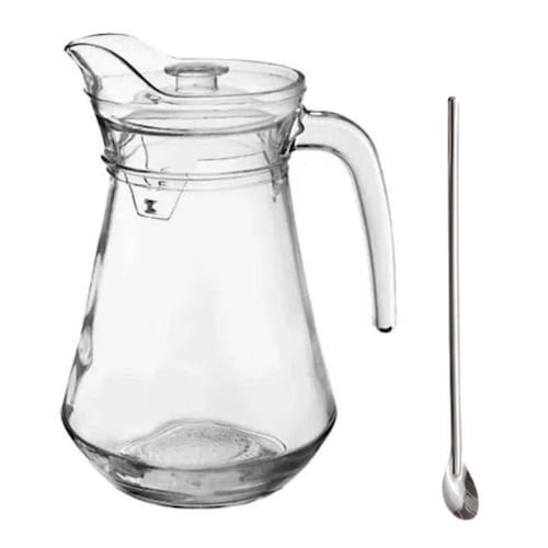 Jarra de Vidro Cristal 1.5L + Colher Bailarina 30 cm em Aço Inox