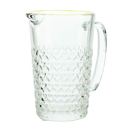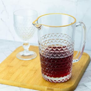 - Design Elegante: O formato em coração com acabamento em fio dourado adiciona um toque de glamour à sua mesa, tornando-a perfeita para jantares, festas e eventos especiais. - Vidro de Alta Qualidade: Fabricada em vidro resistente e transparente, a jarra permite visualizar claramente o conteúdo e garante durabilidade e resistência ao uso diário. - Capacidade Ideal: Com 1 litro de capacidade, é perfeita para servir sucos, água e outras bebidas com praticidade, atendendo tanto a pequenas reuniões quanto a grandes eventos. - Fácil de Manter: O vidro é fácil de limpar e mantém a beleza da jarra por muito mais tempo, proporcionando um uso prolongado sem comprometer o estilo. - Versatilidade: Além de ser ideal para bebidas, a jarra pode ser utilizada também para servir molhos e outras preparações culinárias, ampliando suas possibilidades na cozinha.