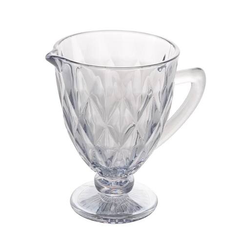 - Medida: 20,3 x 14 x 14cm- Capacidade: 1,2L- Peso: 1,200Para você que gosta de requinte e bom gosto, não pode deixar de ter na sua casa o Jogo de Taças e Jarra modelo diamante. Por ser produzida em vidro, sua transparência deixa à mostra o conteúdo de dentro da jarra, o que é bastante interessante quando as bebidas servidas são coloridas. Para servir os seus convidados com muita classe, a Jarra DIAMOND TRANSPARENTE é perfeita, tanto no quesito apresentação visual, quanto na praticidade que oferece ao servir as bebidas.