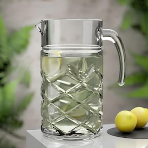 Sirva suas bebidas com muito mais estilo e praticidade! A Jarra Pinea combina design sofisticado com a resistência do vidro premium. Com tampa vermelha moderna e formato elegante inspirado em abacaxi, ela é perfeita para sucos, água, drinks e muito mais.