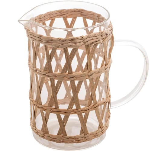 Jarra de Vidro Wolff 1L Fibra Natural e Alça Água Suco Drinks Pequena Decorada Mesa.