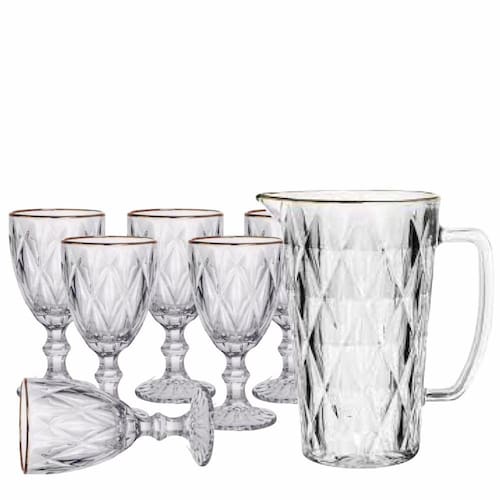 Jarra e Taças com Fio de Ouro Transparente 7pç Diamond
