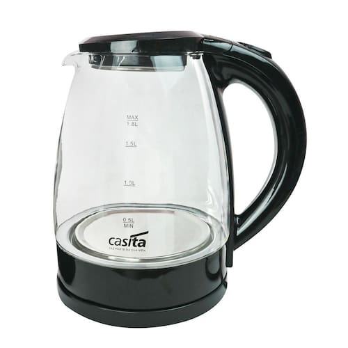Jarra elétrica de vidro com capacidade de 1,8 litros, potência de 1500W e voltagem de 127V 60HZ. Corpo em vidro resistente, base giratória, indicador de nível e sistema de desligamento automático.Acessórios