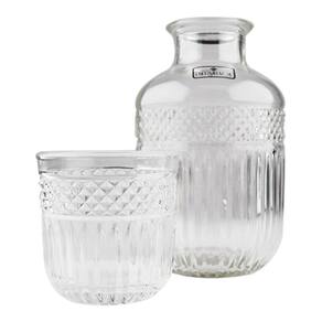 Dimensões Jarra Ø 7,5x15,5cm | Copo Ø 5,7x7,5cm Capacidade Jarra 600ml | Copo 200ml Material Principal Vidro Linha Palace Informações Adicionais Cuidado ao apoiar sobre mesas e prateleiras e evite o atrito entre as peças para evitar riscos na superfície das mesmas Para manter o brilho e a transparência do produto é aconselhável lavar à mão, com o lado macio da esponja (lado amarelo) e detergente neutro