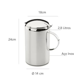 Composição do produto: 1 Jarra com alça em inox 2,8L 1 Tampa em inox