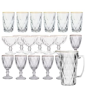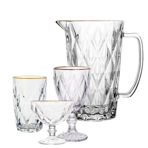 Jarra, Taça Agua e Sobremesa e Copo 19pç Diamond Fio de Ouro Lyor
