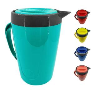 Jarra térmica caribe 2 litros verde suco agua chá unitermi Cor: azul-turquesa A jarra caribe foi desenvolvida com parede dupla e isolamento em poliuretano, impedindo a condensação de líquidos pela parede da jarra. Sua conservação térmica é de 6 horas para líquidos frios e 12 horas com gelo. Possui tampa com sistema de trava, impedindo o derramamento e duas opções para a saída do líquido. Produto livre de bpa.