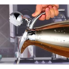 O bico de despejo abre facilmente com botão de pressão para um despejo simples com uma mão.