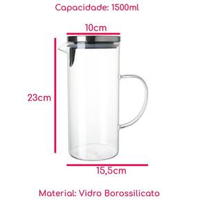 Jarra Vidro Borossilicato 1,5L Tampa Inox Resistente
