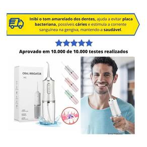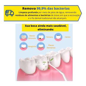 Jato d'água irrigador oral higiene limpeza bucal e dental Atençãotodas as unidades adquiridas até às 15h00, serão enviadas no mesmo diao irrigador oral foi desenvolvido para alcançar e higienizar locais que a escova e o fio dental não alcançam. É ótimo e recomendado principalmente a quem usa , implantes, próteses e outros procedimentos, e não consegue tirar melhor proveito do fio.Além disso, é capaz de remover restos de alimentos entre os dentes, o que ajuda a evitar placa bacteriana e possíveis cáries. Inibi o tom amarelado dos dentes e estimula a corrente sanguínea na gengiva, mantendo-a saudável.Especificações:bivolt.Dentes saudáveis e hálito fresco.Limpeza profunda, prática e indolor.Três vezes mais efetivo que o uso do fio dental.Itens inclusos:- irrigador oral.- 4 bicos diferentes para limpeza mais eficiente.- cabo usb para carregar Marca: Não Informado